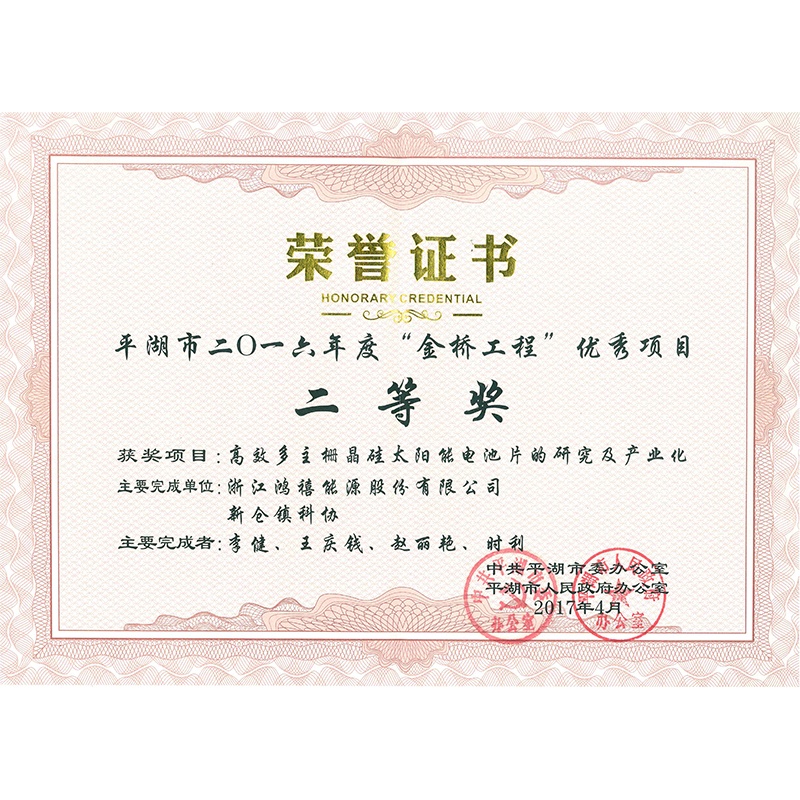浙江鴻禧能源股份有限公司地處浙江省平湖市,位于上海、蘇州、杭州、寧波四大城市連成一個四邊形的地理中心,是一家專業從事太陽能發電系統的設計、建設、運維以及從事高效晶硅太陽能電池片生產、研發和銷售的國家高新技術企業。公司現占地面積 75999.9 平方米,現有員工 1200 余人。目前,公司注冊資本為1.7488億元。